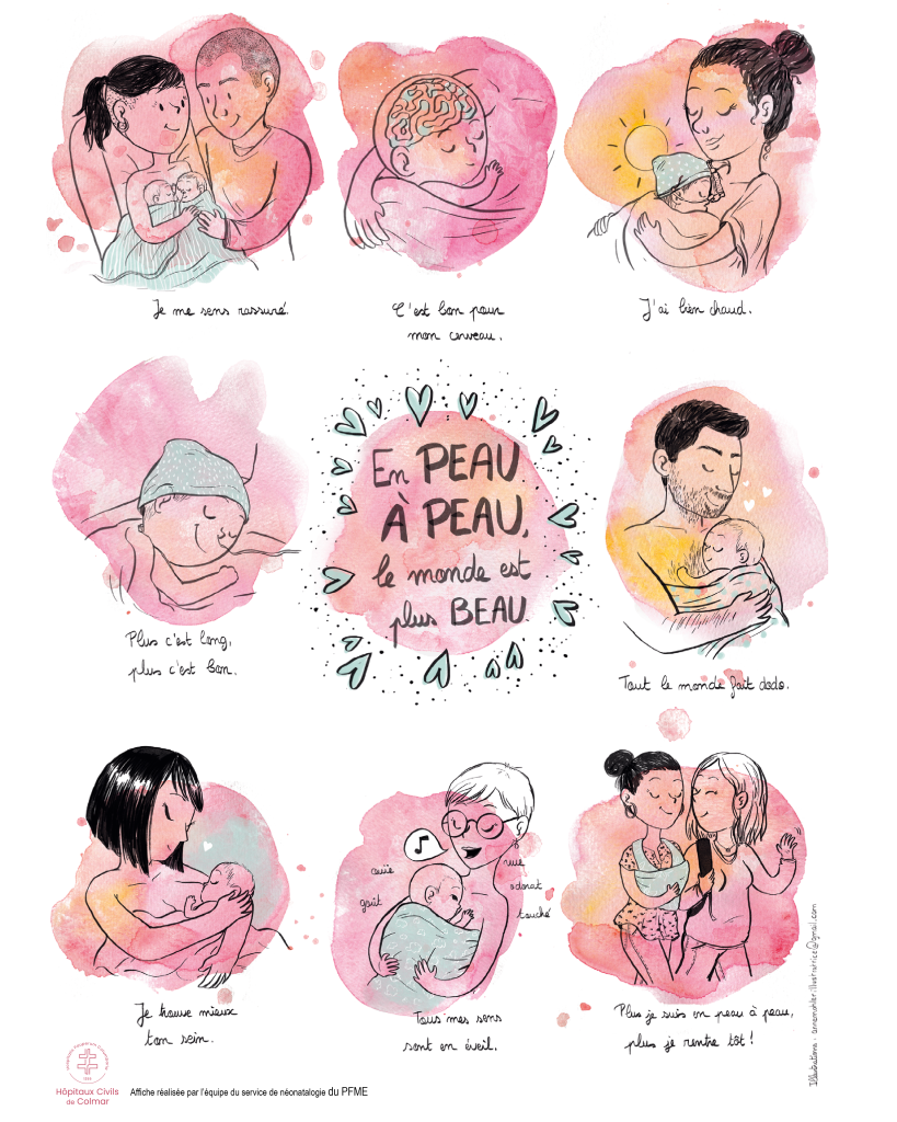 Découvrez tous les bénéfices du peau à peau grâce aux illustrations d’Anne MAHLER !