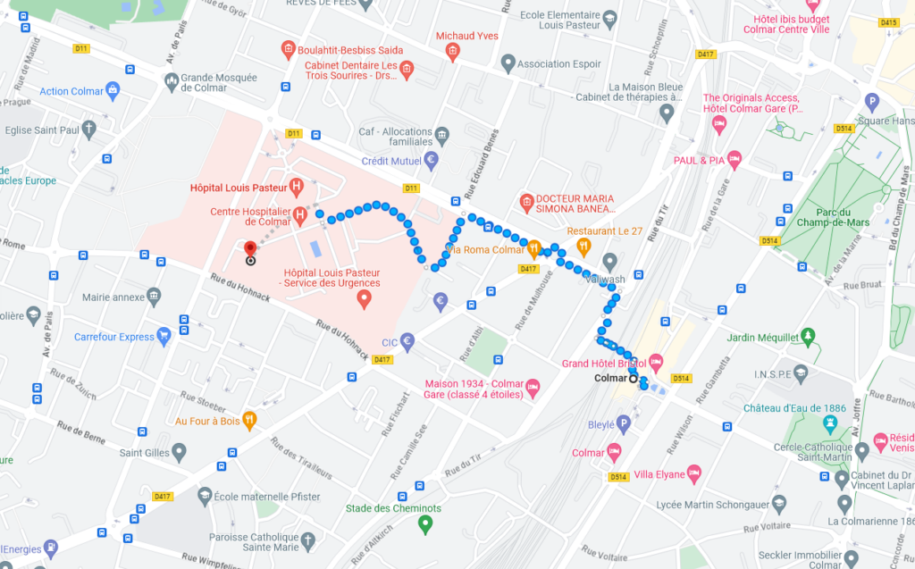 Vous pouvez vous rendre aux Hôpitaux Civils de Colmar en bus :