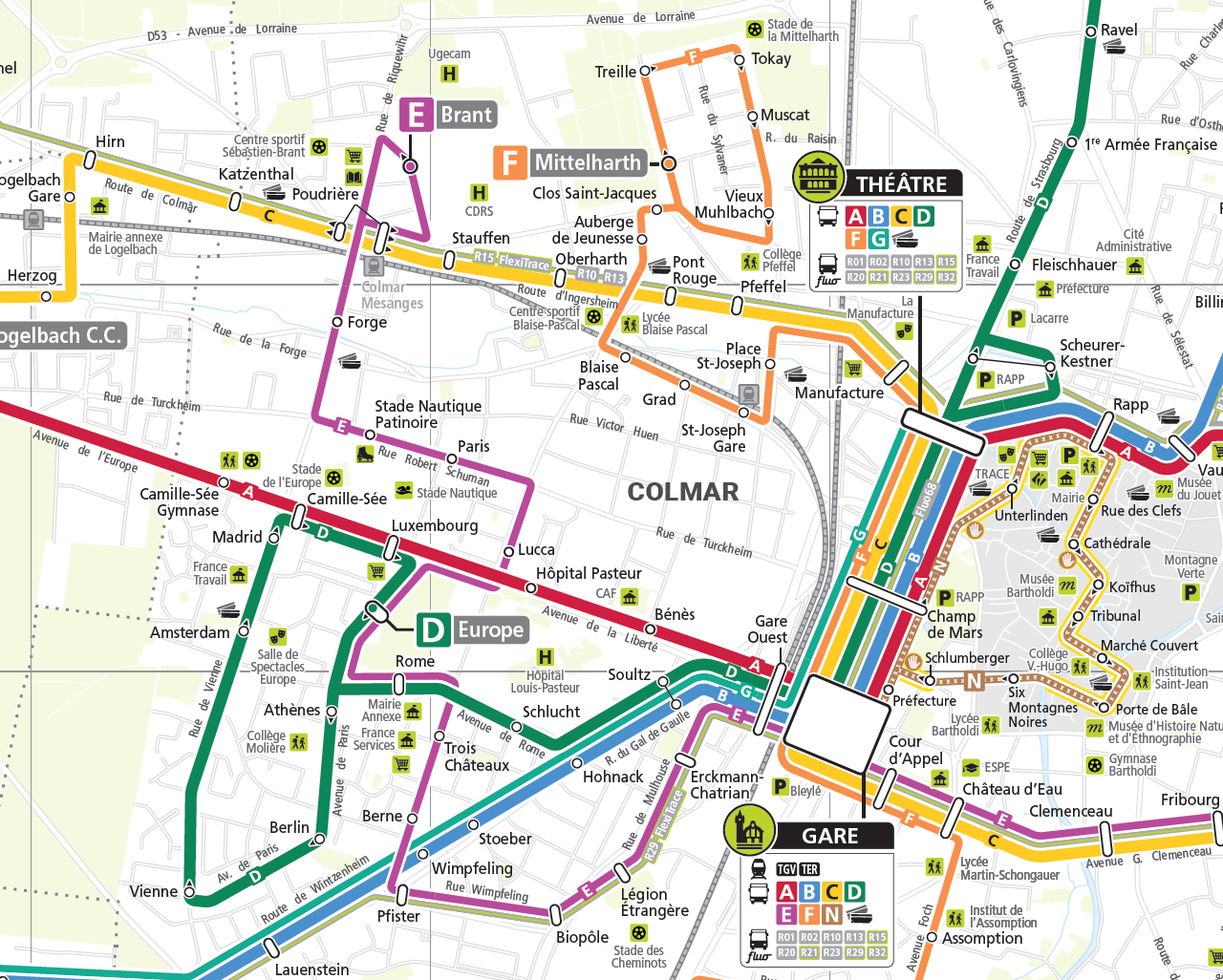 Téléchargez le plan des lignes de bus de la ville de Colmar.